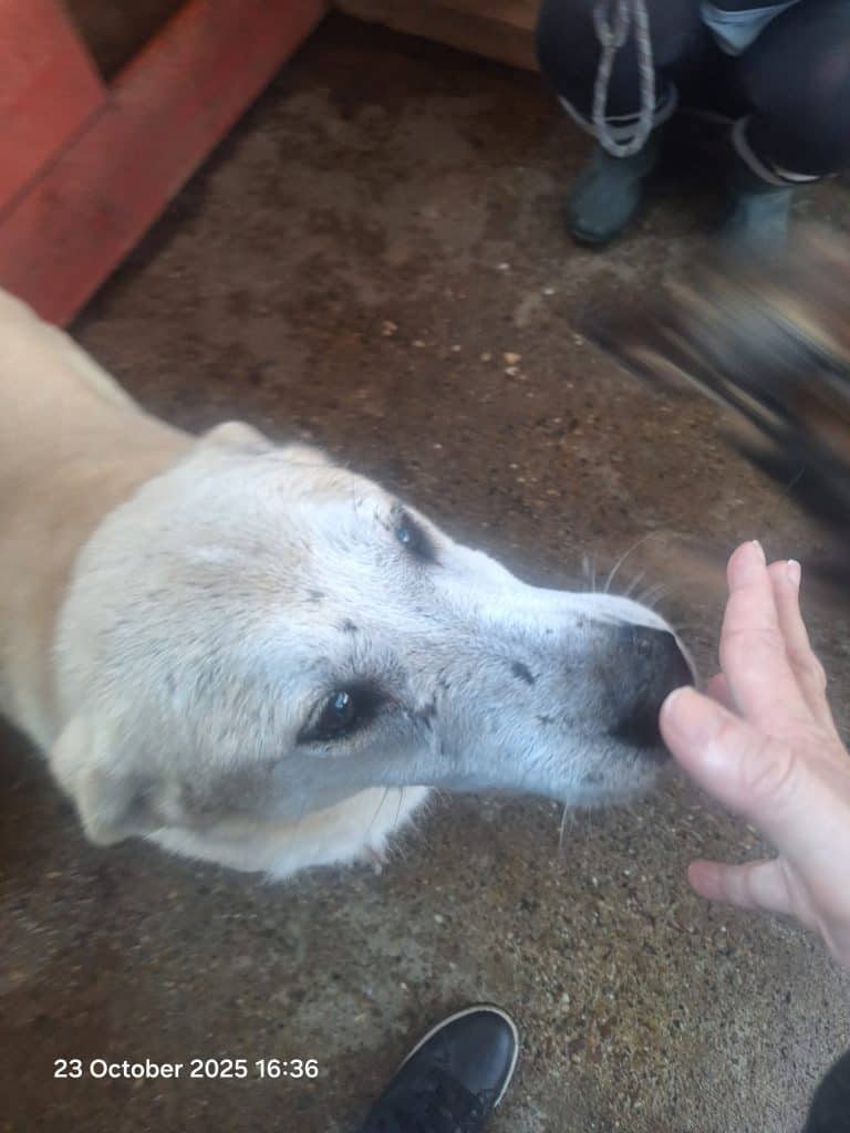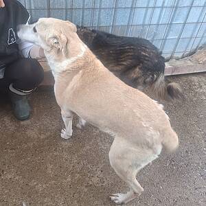 Jasper gets along well with other dogs and is currently sharing a kennel happily with Yasmin. He enjoys canine company and settles well in their presence. While he is very friendly, Jasper can become anxious if someone tries to hug or restrain him, so he is looking for a patient, understanding home that will respect his boundaries and allow him to feel safe at his own pace.